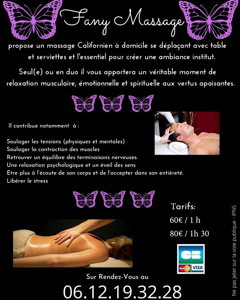 La Hulottière - Chouette Gîte s'associe à Fany Massage pour cette rentrée. Alors n'attendez plus et réservez votre massage seul(e) ou en duo pour votre week-end ou vos vacances.