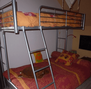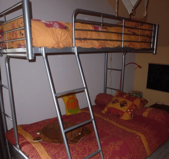 Deux chambres : une avec un lit 140 X 190 et une deuxième avec 2 lits superposés 90x190 et 130x190
